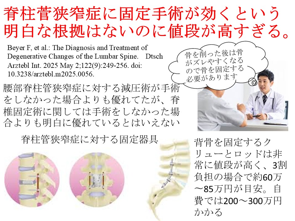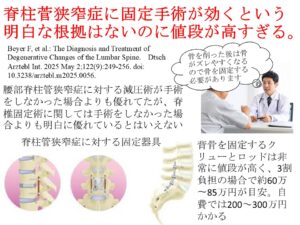 X脊柱管狭窄症に対する固定術の効果はないのに高い